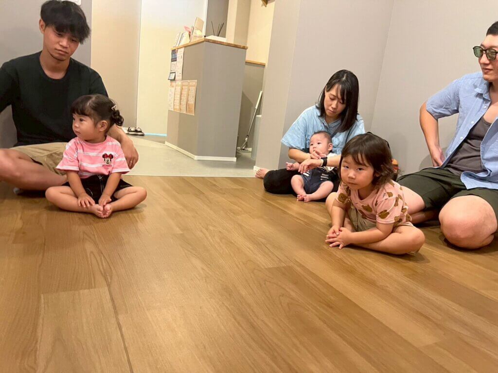 お家の人と手をつないで楽しく体を動かしました!